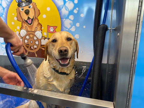 You'll love Cap’n Mike’s back-saving raised wash tubs! No more kneeling down on all fours in the bathroom when it's bath time. A gate opening into the tub makes it easy for your pup to get in and out. Once you try our wash tubs, you’ll never want to wash your dog at home again!